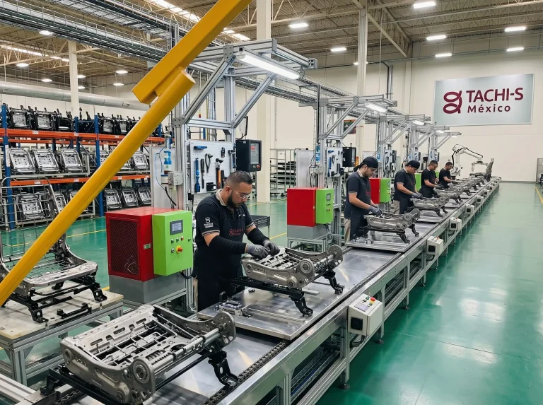 Durante el proceso FRAME (Flexible Robotic Assembly for Manufacturing of Ergonomic Seating) en Tachi-S fabricamos la estructura interna del asiento utilizando materiales resistentes y procesos de ensamblaje altamente controlados.